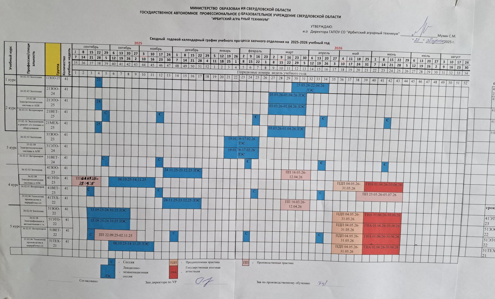 График учебного процесса заочного и очно-заочного отделения на 2025-2026 учебный год